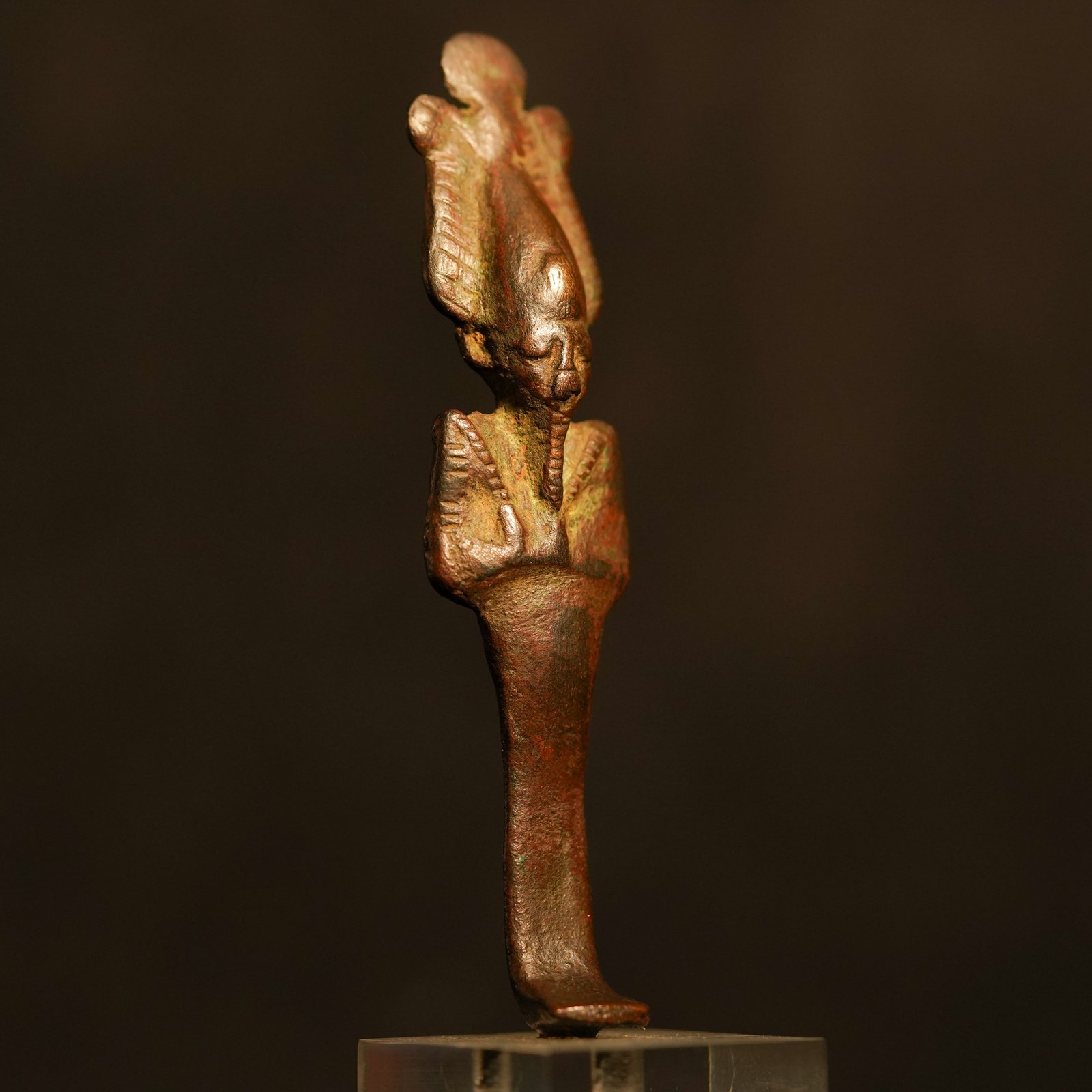 The Late Period (664–332 BC) marked the last great renaissance of art and national identity in the face of growing foreign influence. During this period, the cult of Osiris became the central focus of popular piety, triggering the production of technically sophisticated bronze works using the lost-wax technique. These figures were placed in temples as votive offerings, serving as an eternal link between the devotee and the god to ensure divine protection and triumph over death.